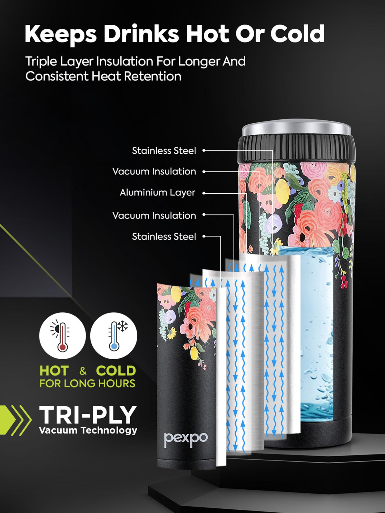 - Insulation: Double wall vacuum insulation