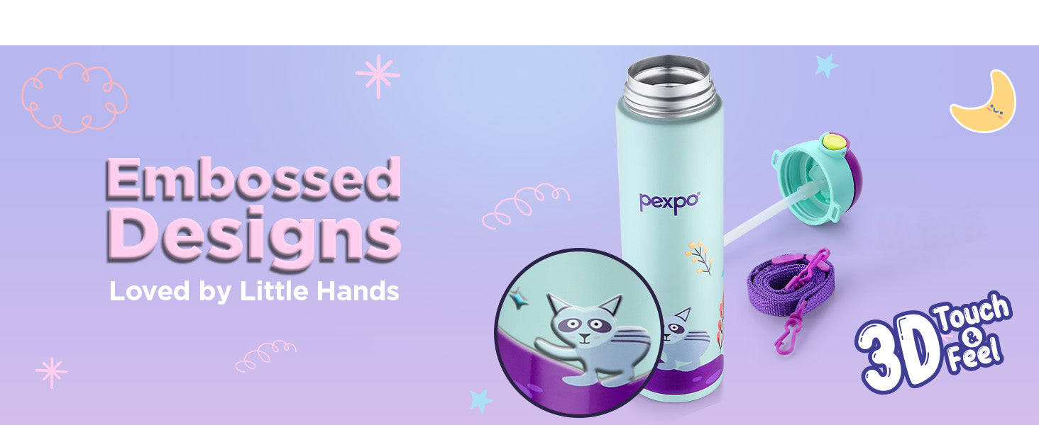 Pexpo Pixy Art Stainless Steel Bottle | Tri-Ply Vacuum Insulated Hot & Cold Flask | For Kids