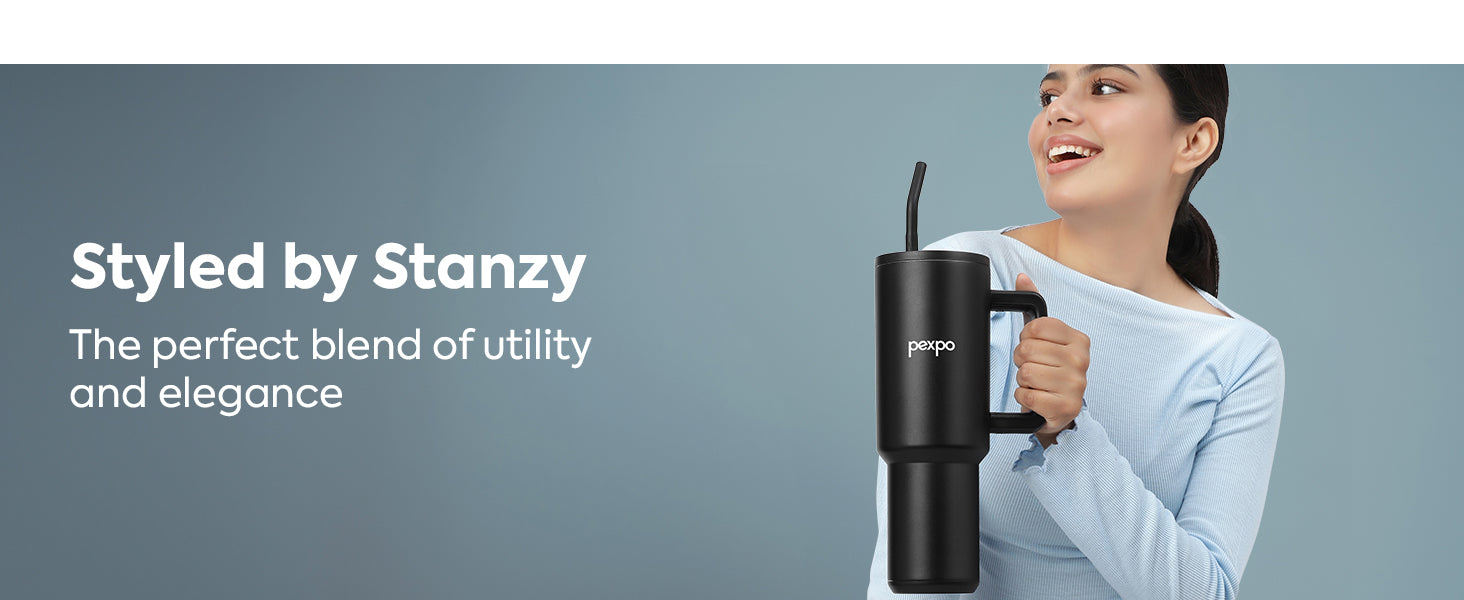 Pexpo Stanzy Thermo Steel Tumbler | Tri-Ply Vacuum Insulated Hot & Cold Flask | With Handle