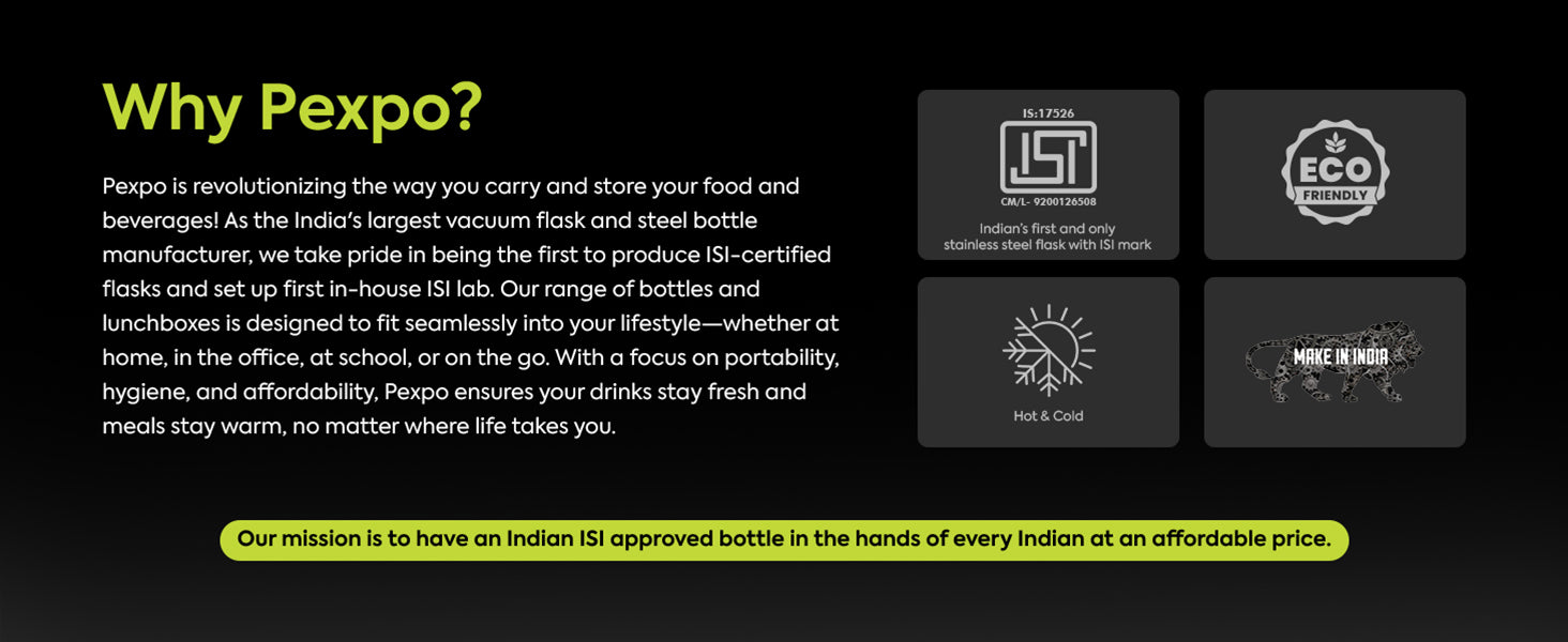 - Durable Build: Crafted from premium food-grade Stainless Steel, this sturdy Pexpo bottle ensures long-lasting performance, hygiene, and safety with every sip.